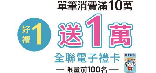 活動期間內,凡於全通路購買夏普產品,單筆發票滿 10 萬元,再送1萬!