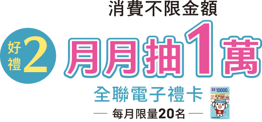 活動期間內,凡於全通路購買夏普任一產品(不含耗材配件),月月抽1萬!