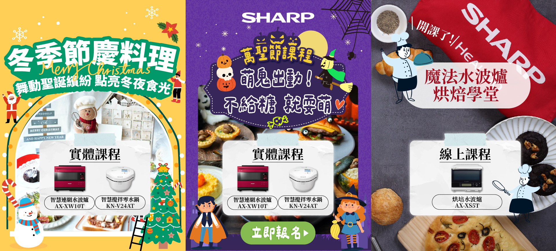 凡購買指定型號AX-XW10T/AX- XP10T /KN-V24AT於保固期間內可兌換一堂實體夏普水波爐廚藝課程券,若報名人數未達5人,將另行電話通知。